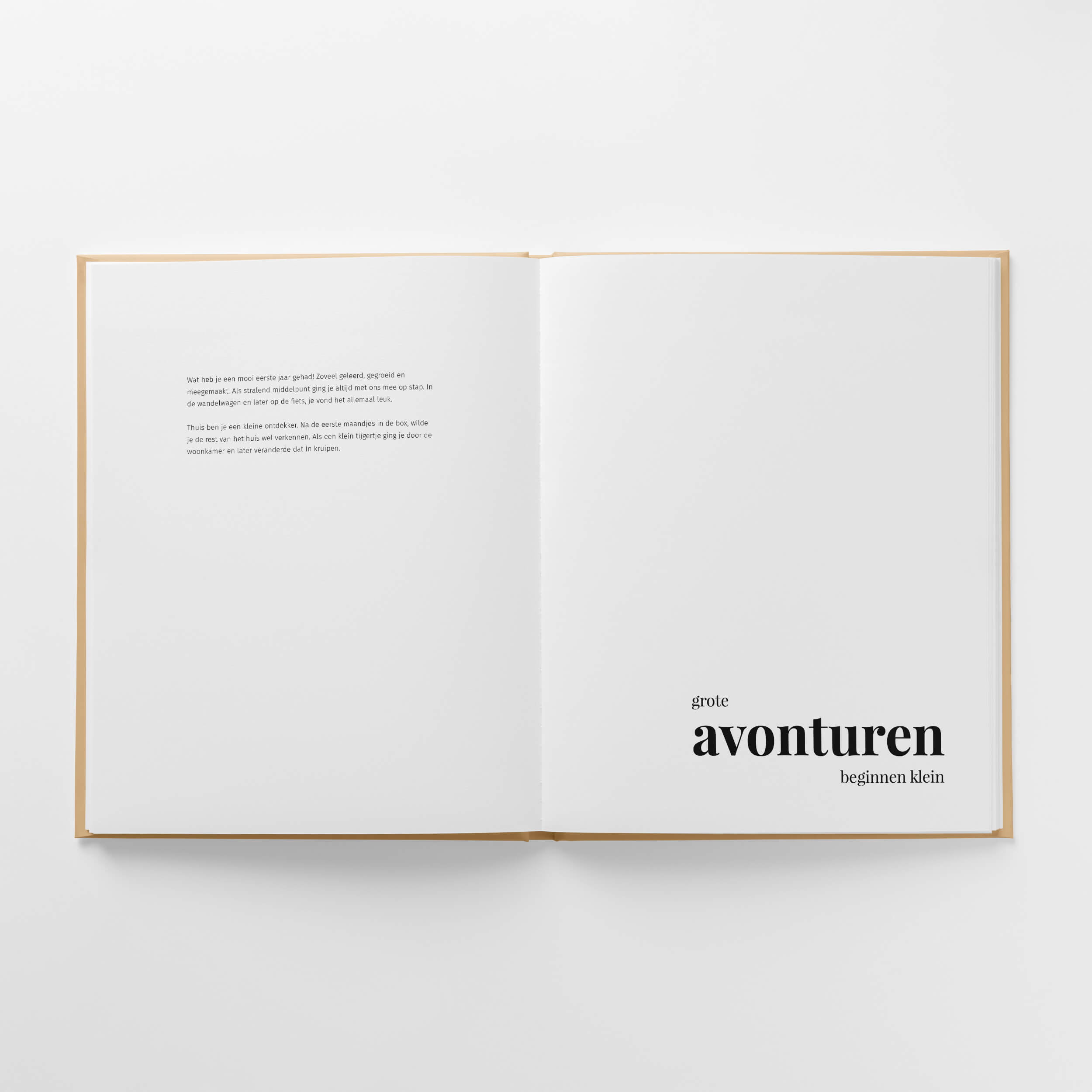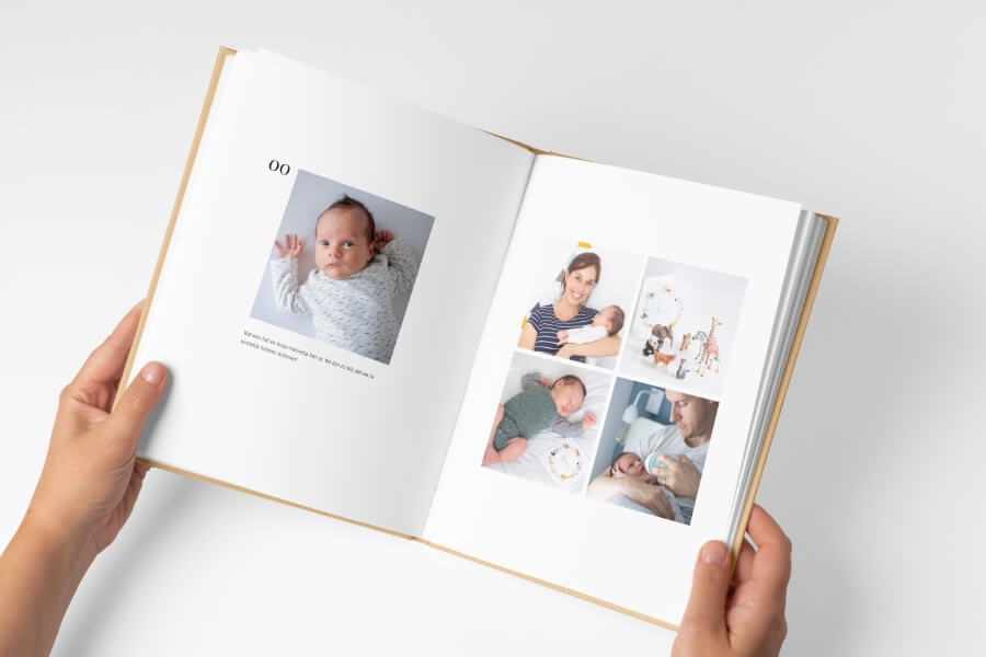 Je vertelt het verhaal van je baby’s eerste jaar aan de hand van verschillende hoofdstukken. Zo weet je zeker dat alle belangrijke momenten een plek krijgen.
