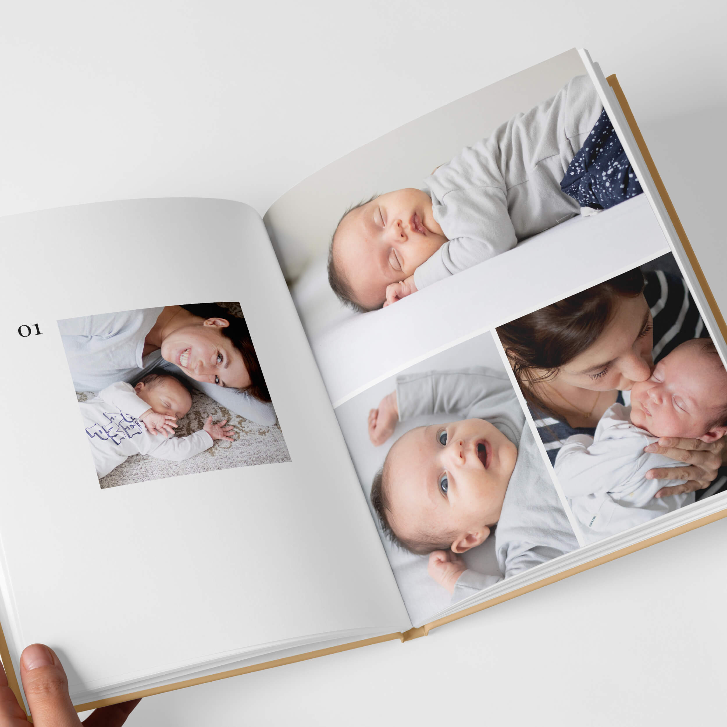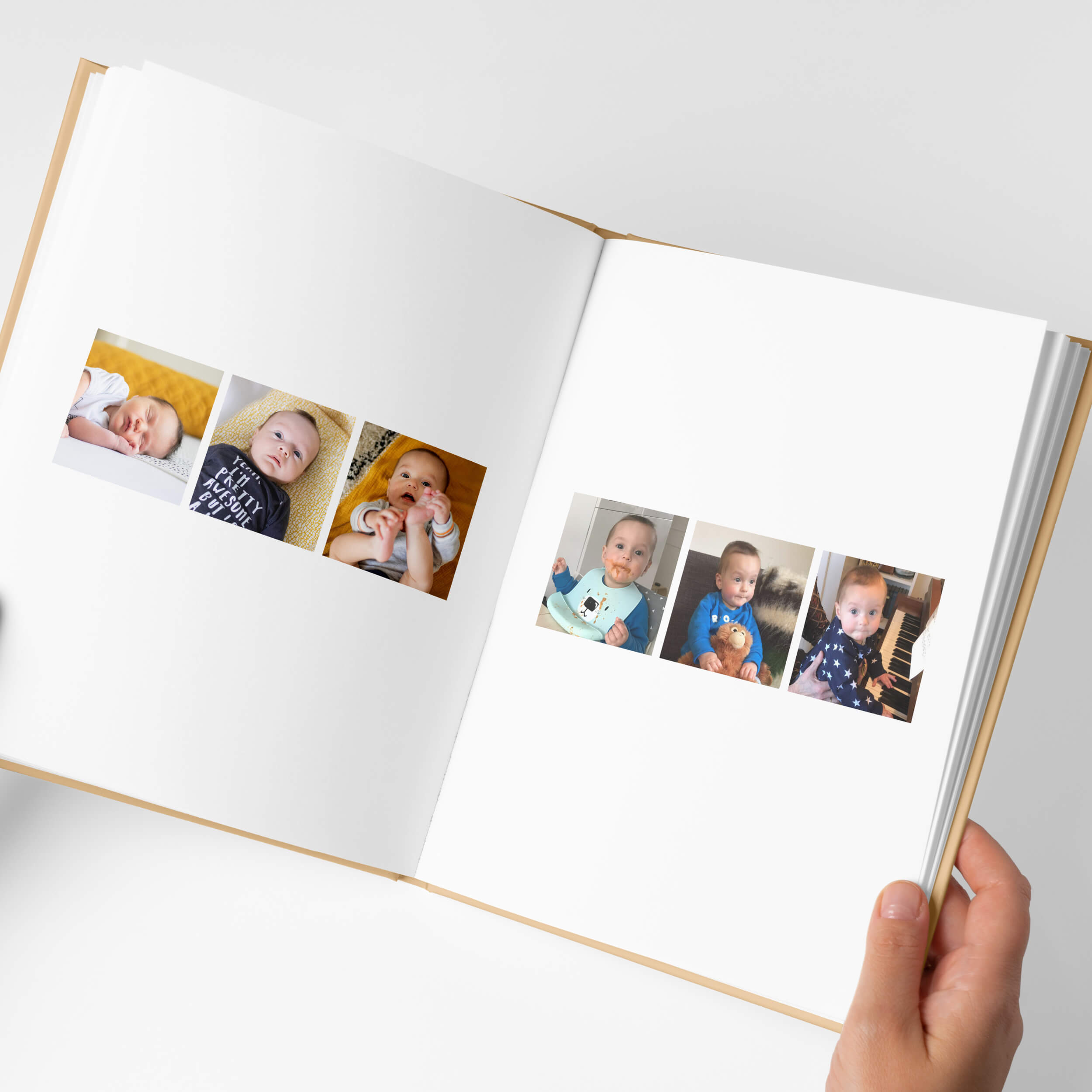 Met het Pure honey design kies je voor een stijlvol album met verfijnde typografie en warme honinggele accenten. Speciaal ontworpen voor de hoogtepunten van je baby's eerste jaar.