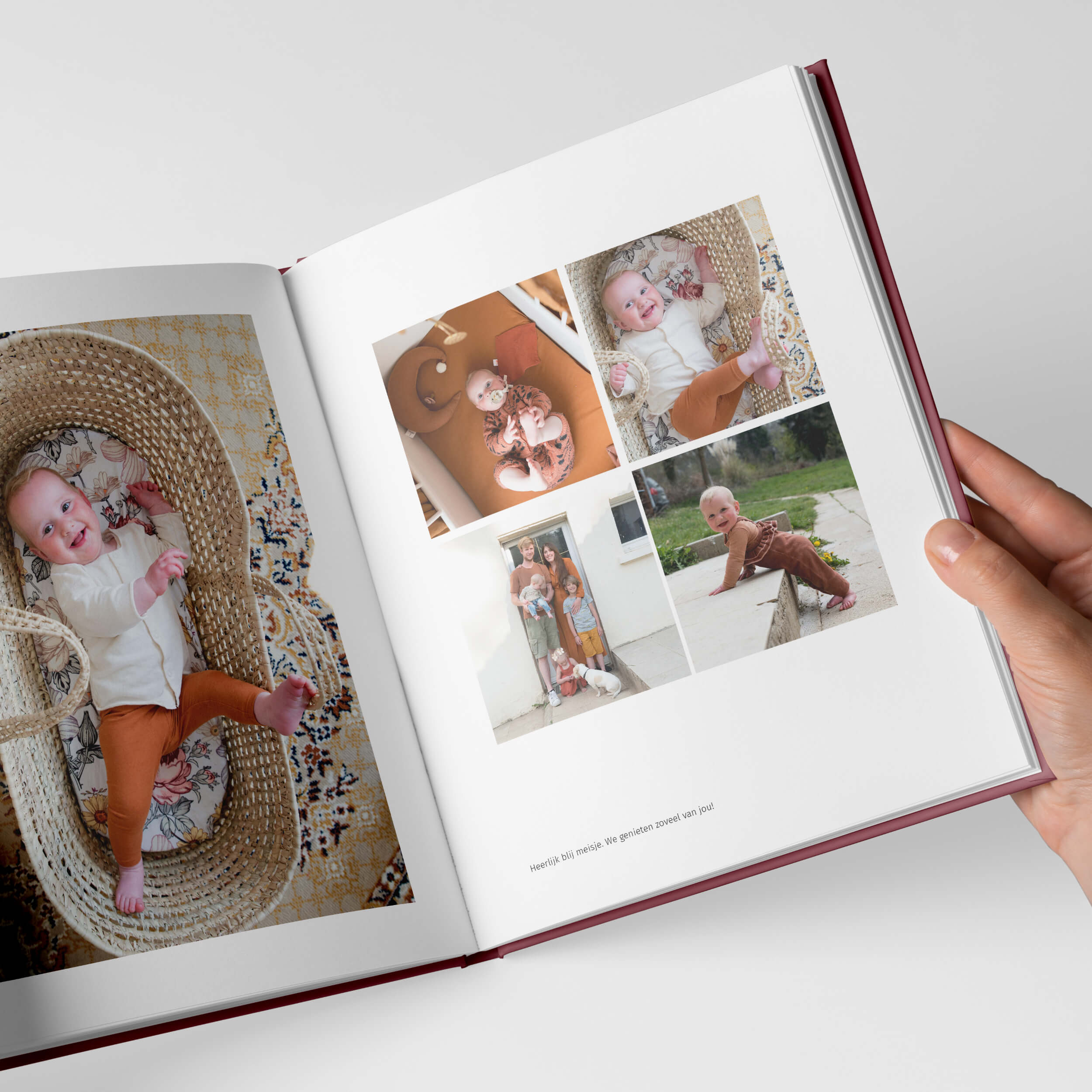 Het Pure rose design geeft jouw fotoalbum een strakke, moderne look. Met warme roze kleuraccenten die prachtig aansluiten bij de foto's van je kind. Speciaal ontworpen voor de hoogtepunten van je baby's eerste jaar.