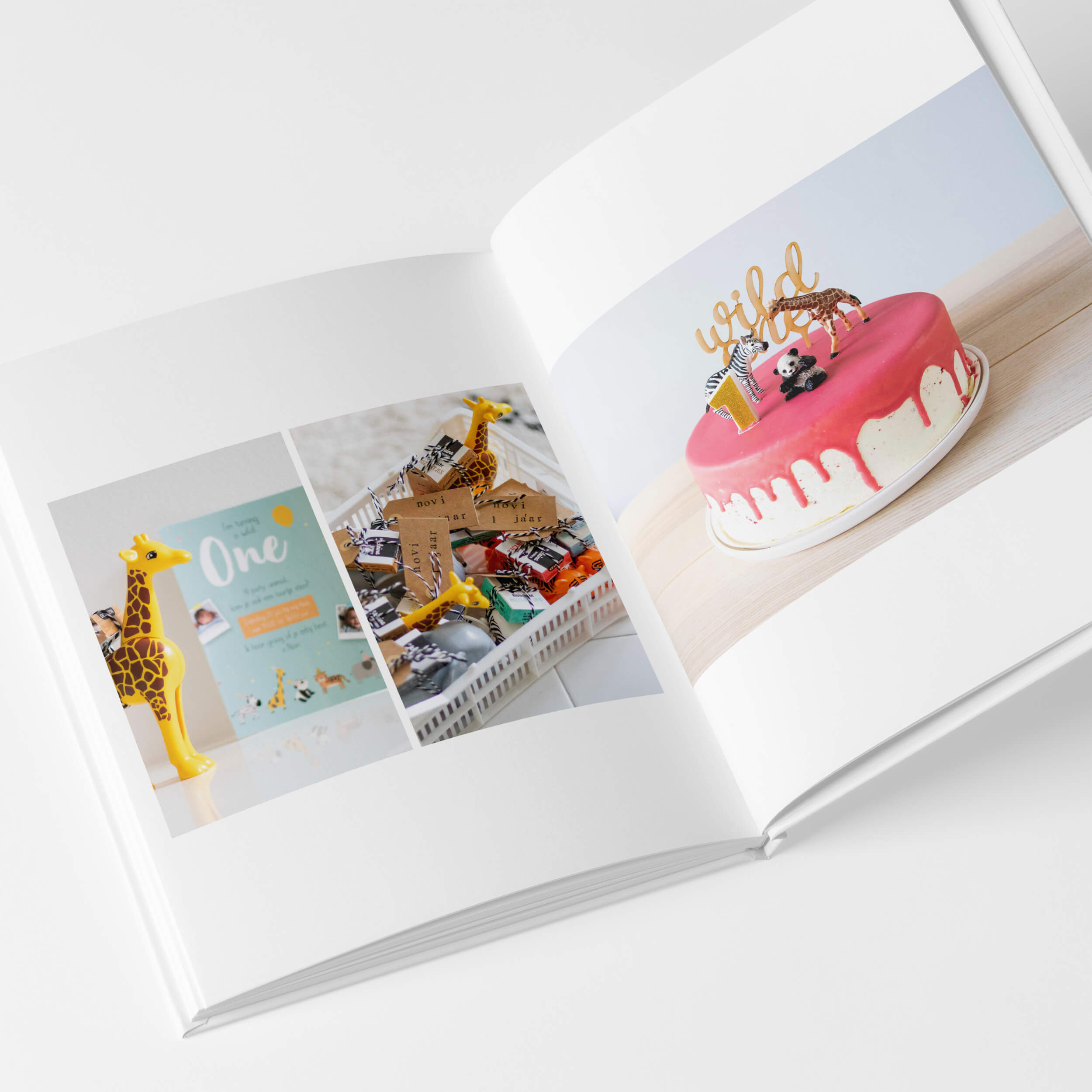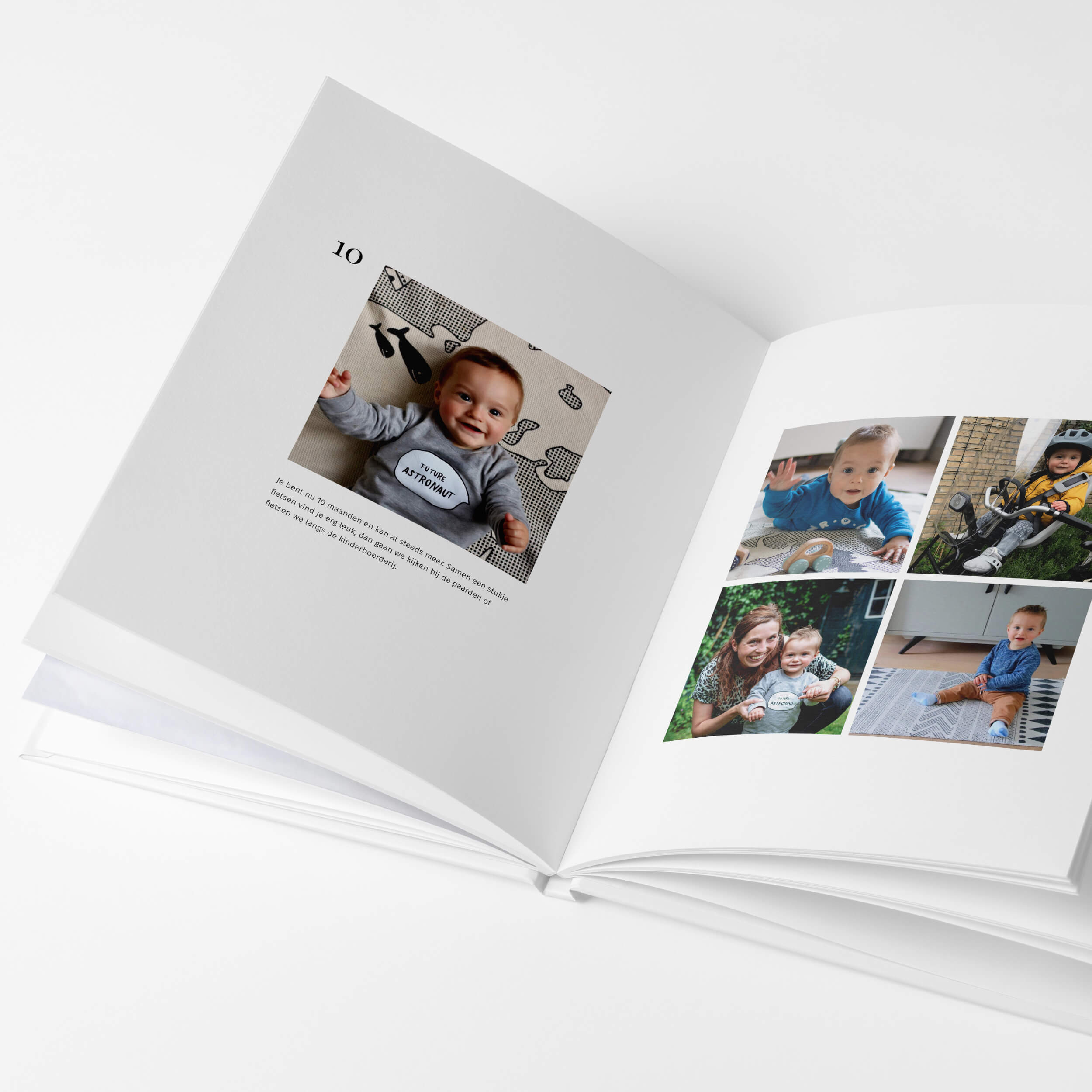 Er is ruimte voor veel hoogtepunten, zoals de geboorte, jullie familie en vrienden, de belevenissen van de eerste 12 maanden en de wonderlijke ontwikkeling van je kind. Ook kun je de eerste vakantie laten zien en natuurlijk het grote feest van de allereerste verjaardag.