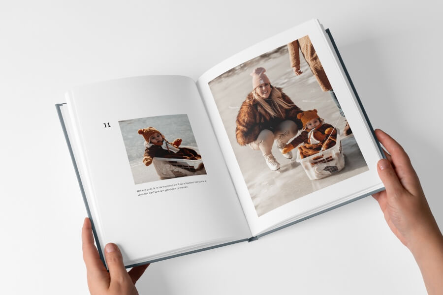 Voor de Pure boeken creëerde ik een tijdloos ontwerp waarin je foto’s stralen. Er is veel rust in het boek, door de zorgvuldig ontworpen pagina’s met veel witruimte. Je hoeft écht niet het boek met perfecte foto’s te vullen, ook de dagelijkse gebeurtenissen komen er juist prachtig in uit! Bewaar die leukste momenten en maak een boek vol herinneringen.