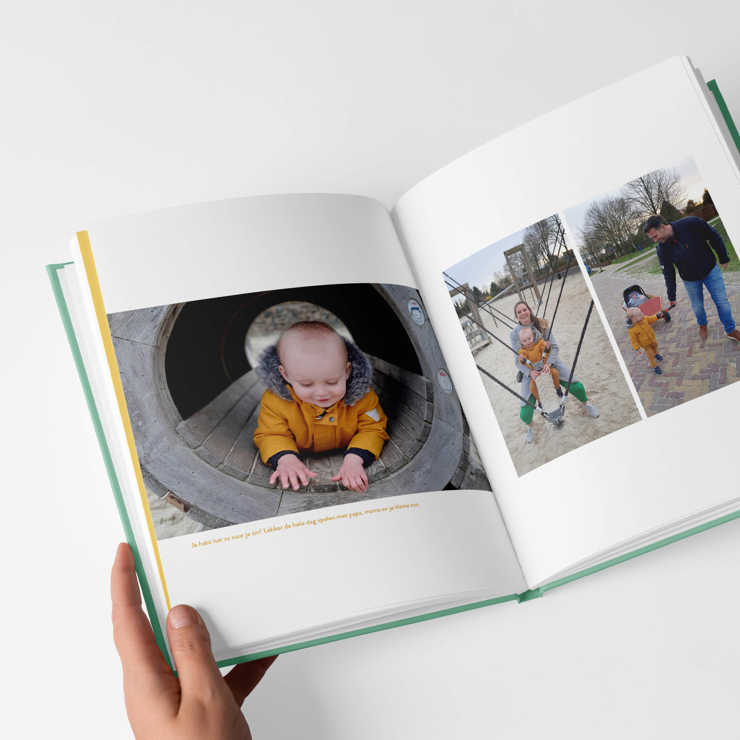 Het Happy colors hip design geeft je een fotoalbum vol vrolijke kleuren en speelse illustraties. De kleuren veranderen mee met je dreumes: frisse tinten in het voorjaar en warme kleuren in de winter, perfect voor de hoogtepunten van het tweede jaar.