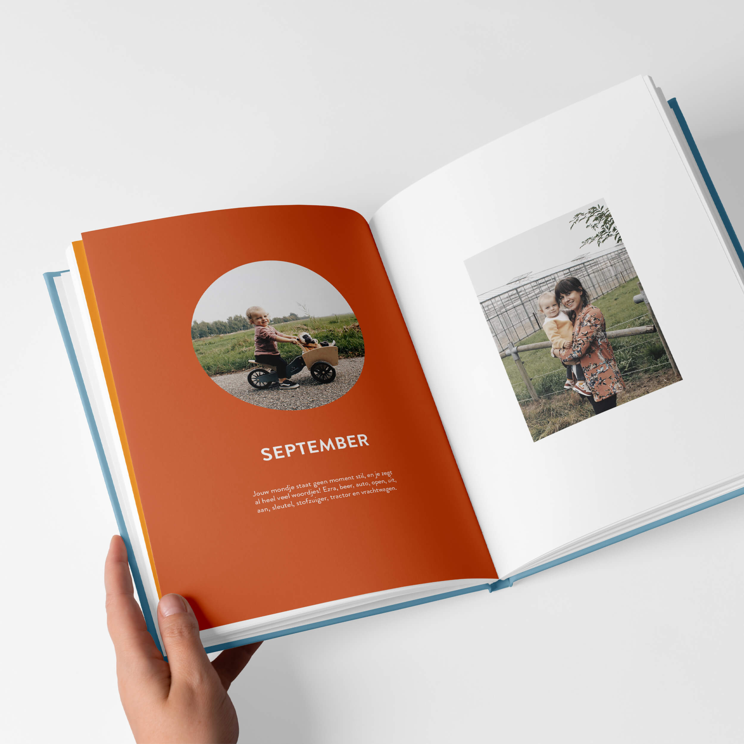 Het Happy colors stoer design geeft je een fotoalbum vol vrolijke kleuren en speelse illustraties. De kleuren veranderen mee met je dreumes: frisse tinten in het voorjaar en warme kleuren in de winter, perfect voor de hoogtepunten van het tweede jaar.
