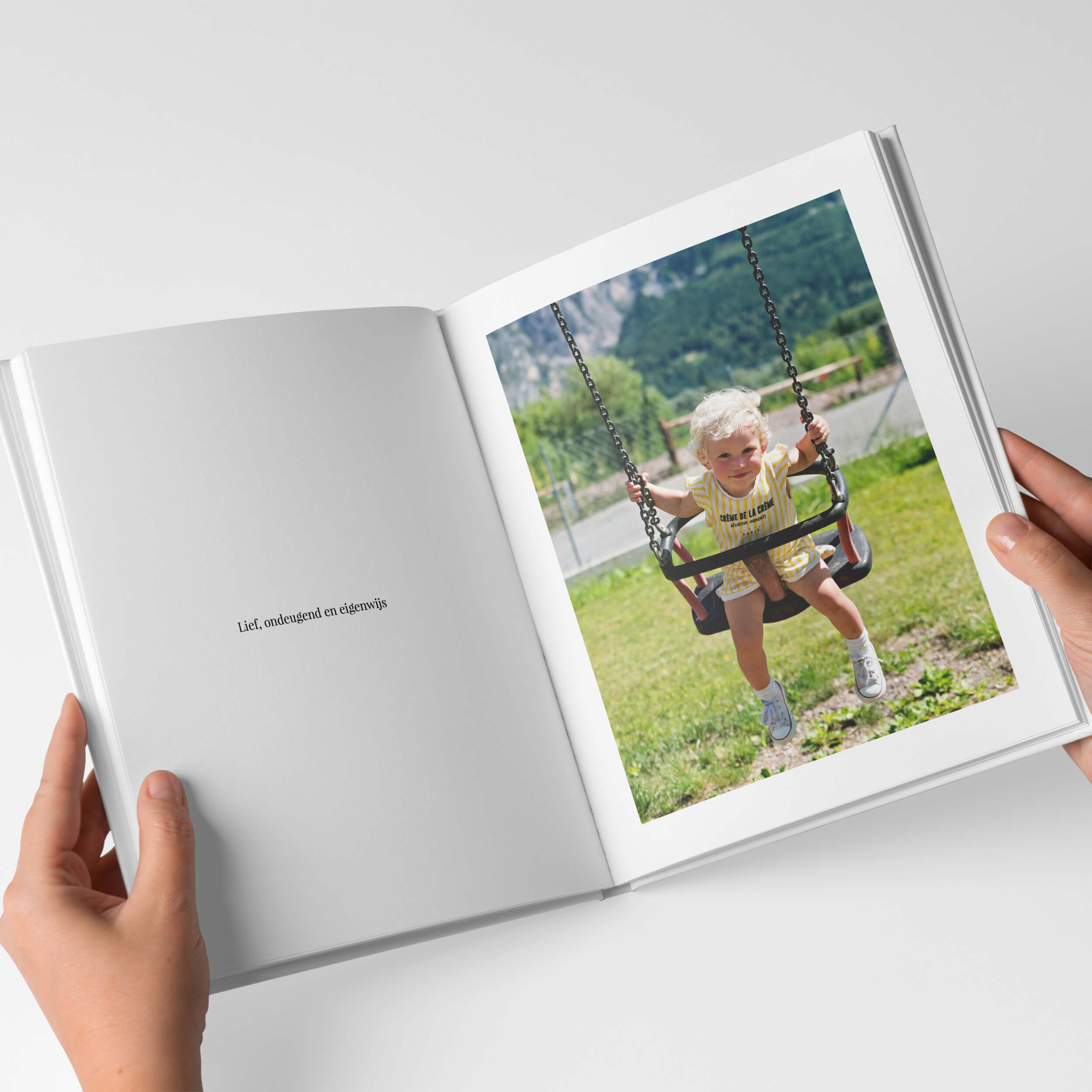 Voor de Pure boeken creëerde ik een tijdloos ontwerp waarin je foto’s stralen. Er is veel rust in het boek, door de zorgvuldig ontworpen pagina’s met veel witruimte. Je hoeft écht niet het boek met perfecte foto’s te vullen, ook de dagelijkse gebeurtenissen komen er juist prachtig in uit! Bewaar die leukste momenten en maak een boek vol herinneringen.