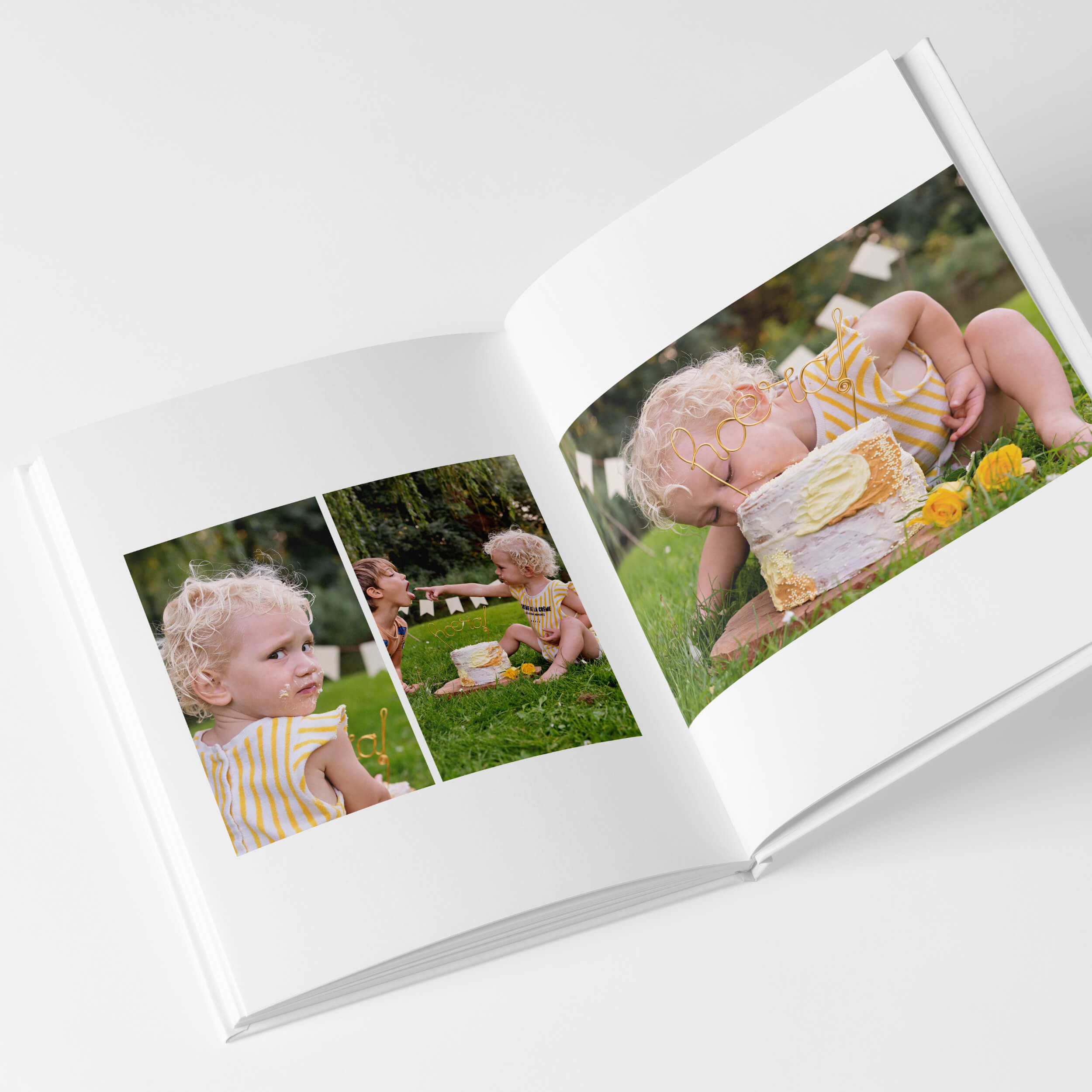 Het Pure white design geeft je fotoalbum een strakke, moderne look. Met veel witruimte en aandacht voor typografie schitteren je foto's in stijlvolle eenvoud. Speciaal ontworpen voor het tweede jaar van je kind.