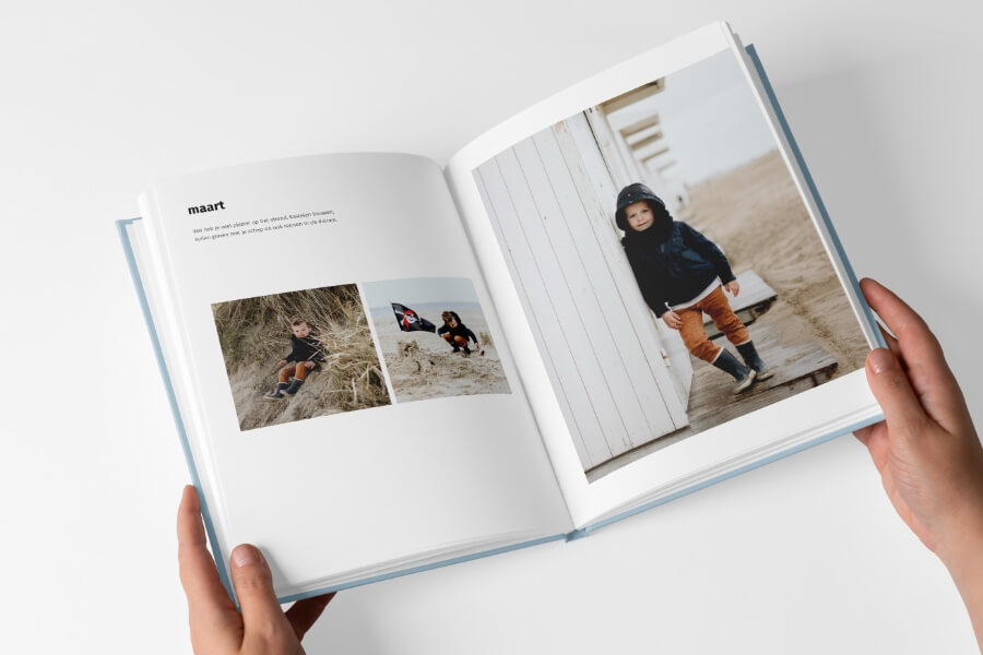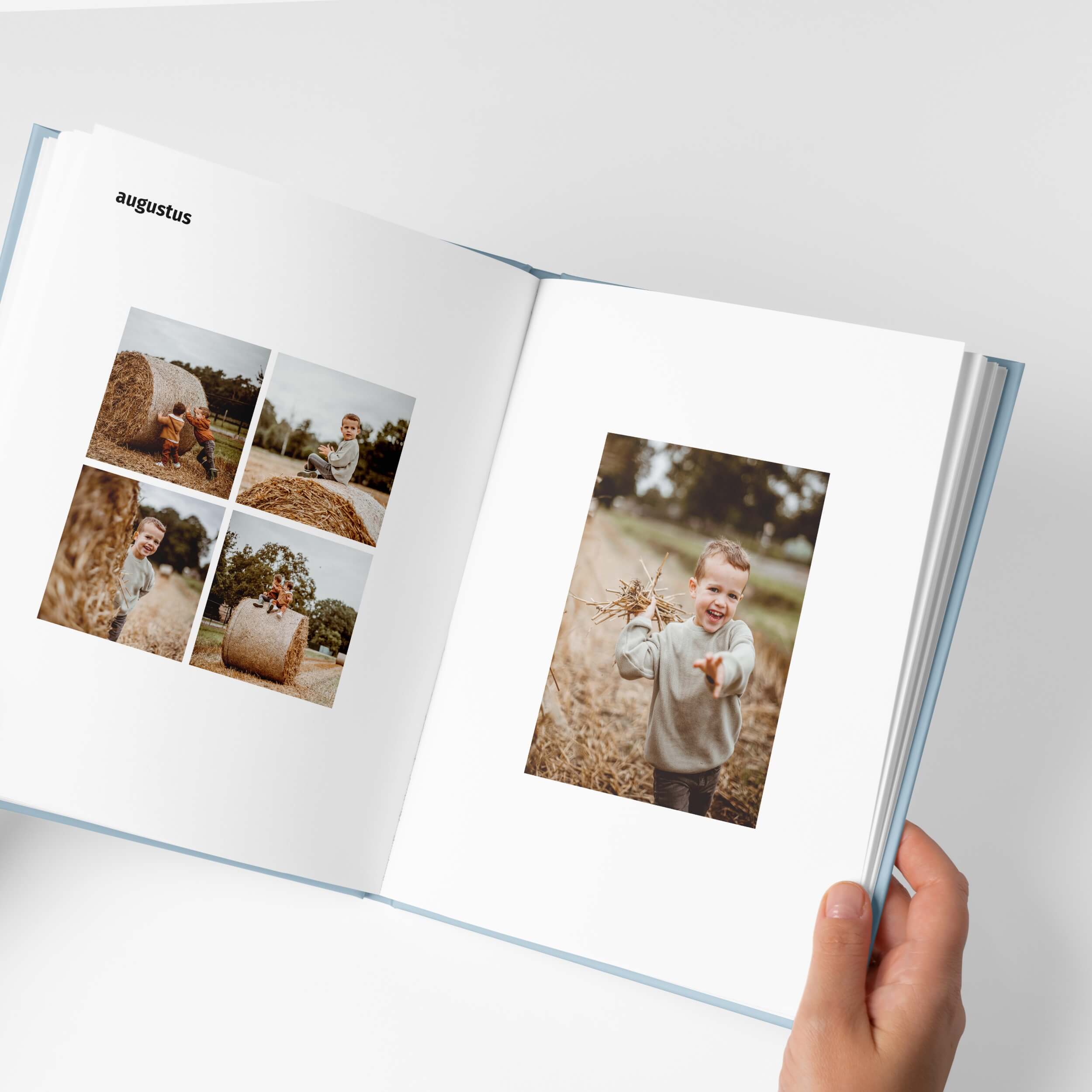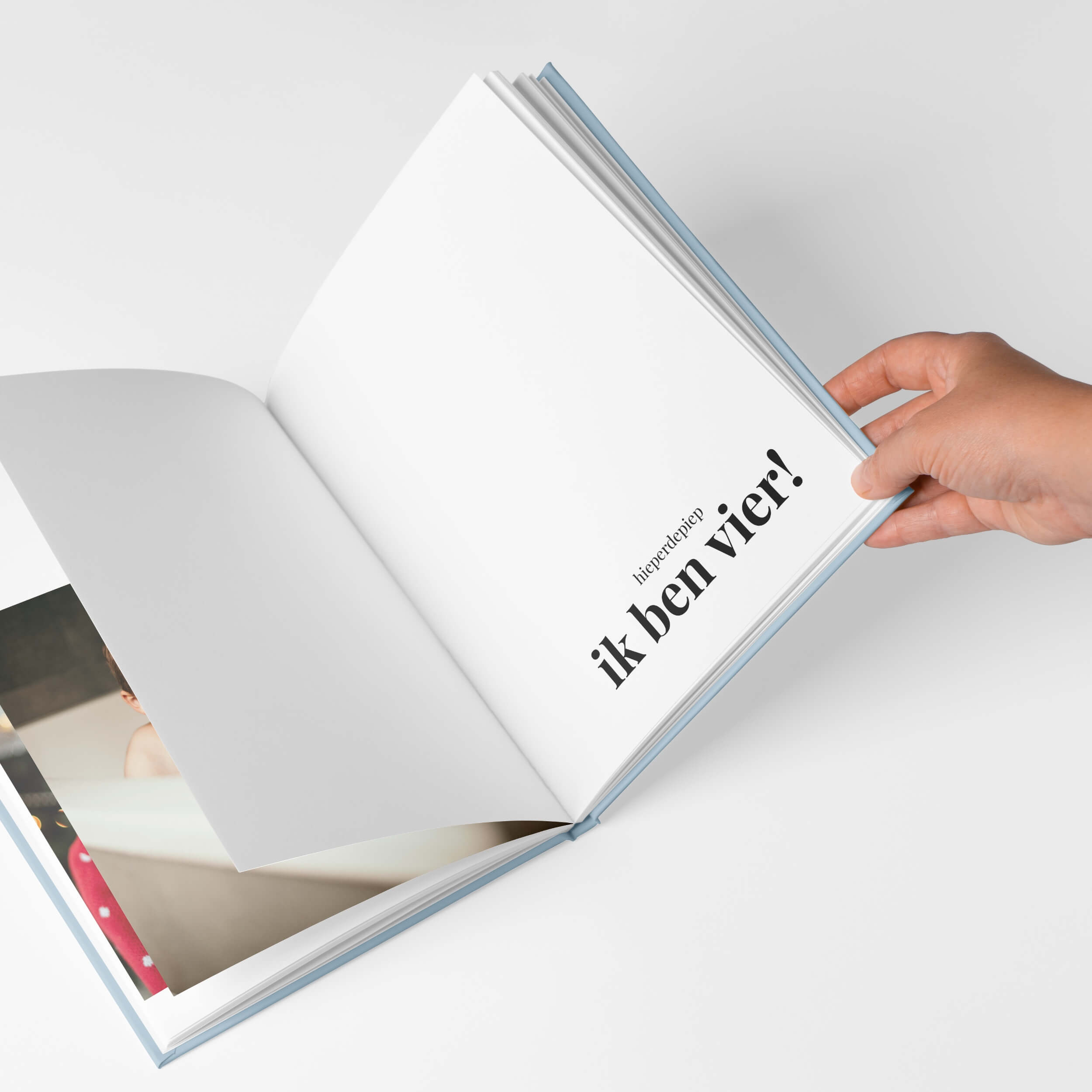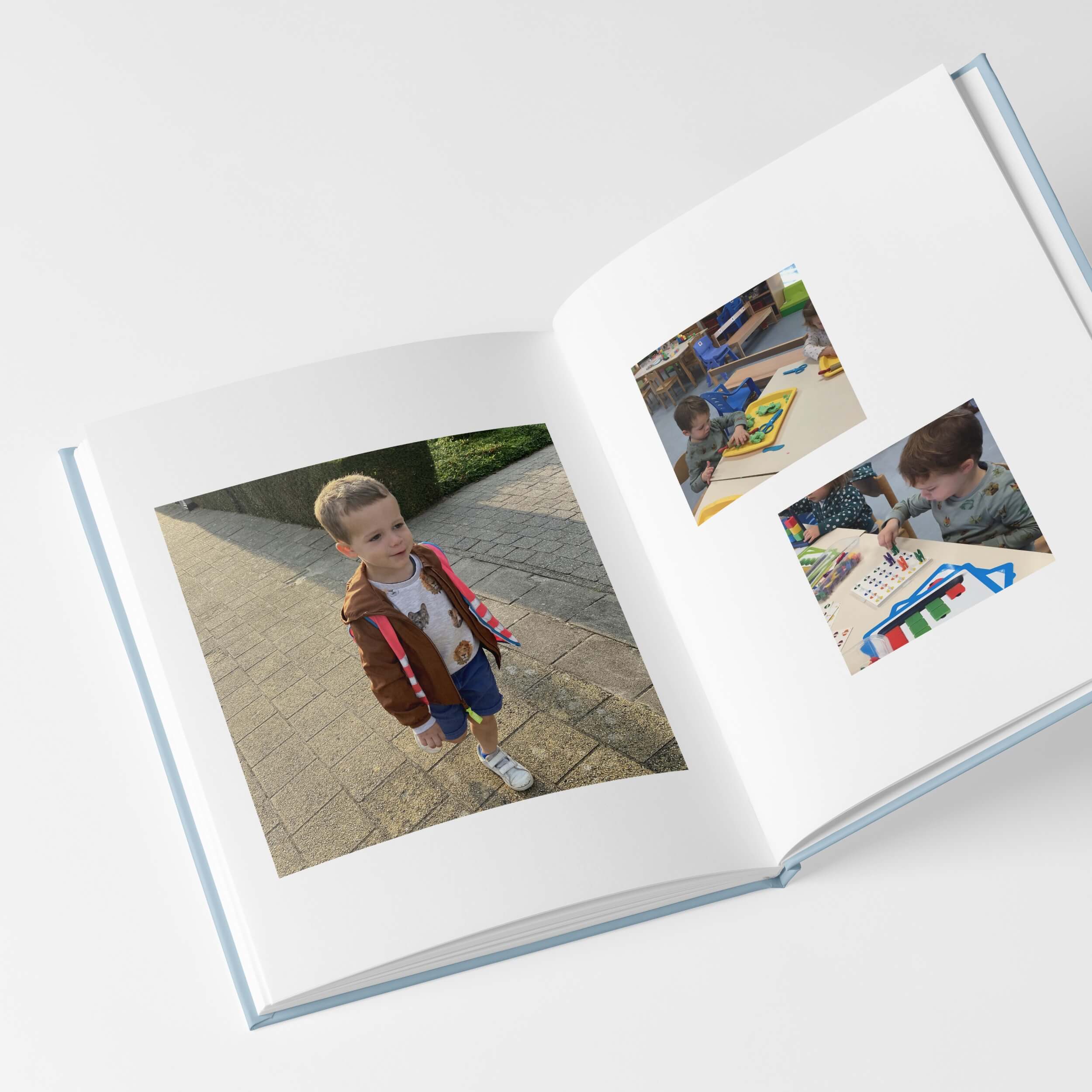 Met het Pure sky design kies je voor een stijlvol fotoalbum met verfijnde typografie. Met zachte lichtblauwe kleuraccenten die prachtig aansluiten bij de foto's van je kind. Speciaal ontworpen voor de hoogtepunten van het vierde jaar en de eerste weken op school.