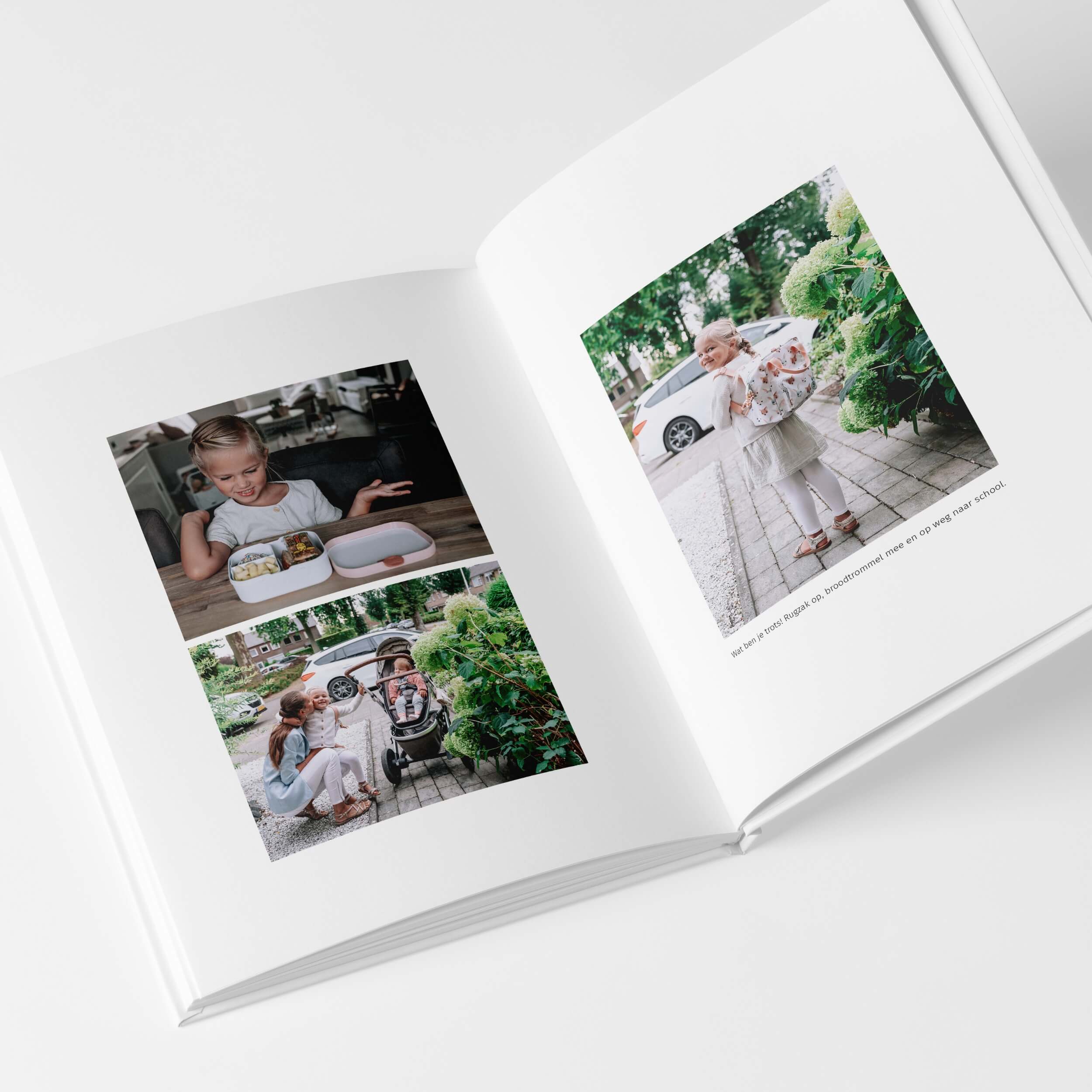 Het Pure white design geeft je fotoalbum een strakke, moderne look. Met veel witruimte en aandacht voor typografie schitteren je foto's in stijlvolle eenvoud. Speciaal ontworpen voor de hoogtepunten van het vierde jaar en de eerste weken op school.