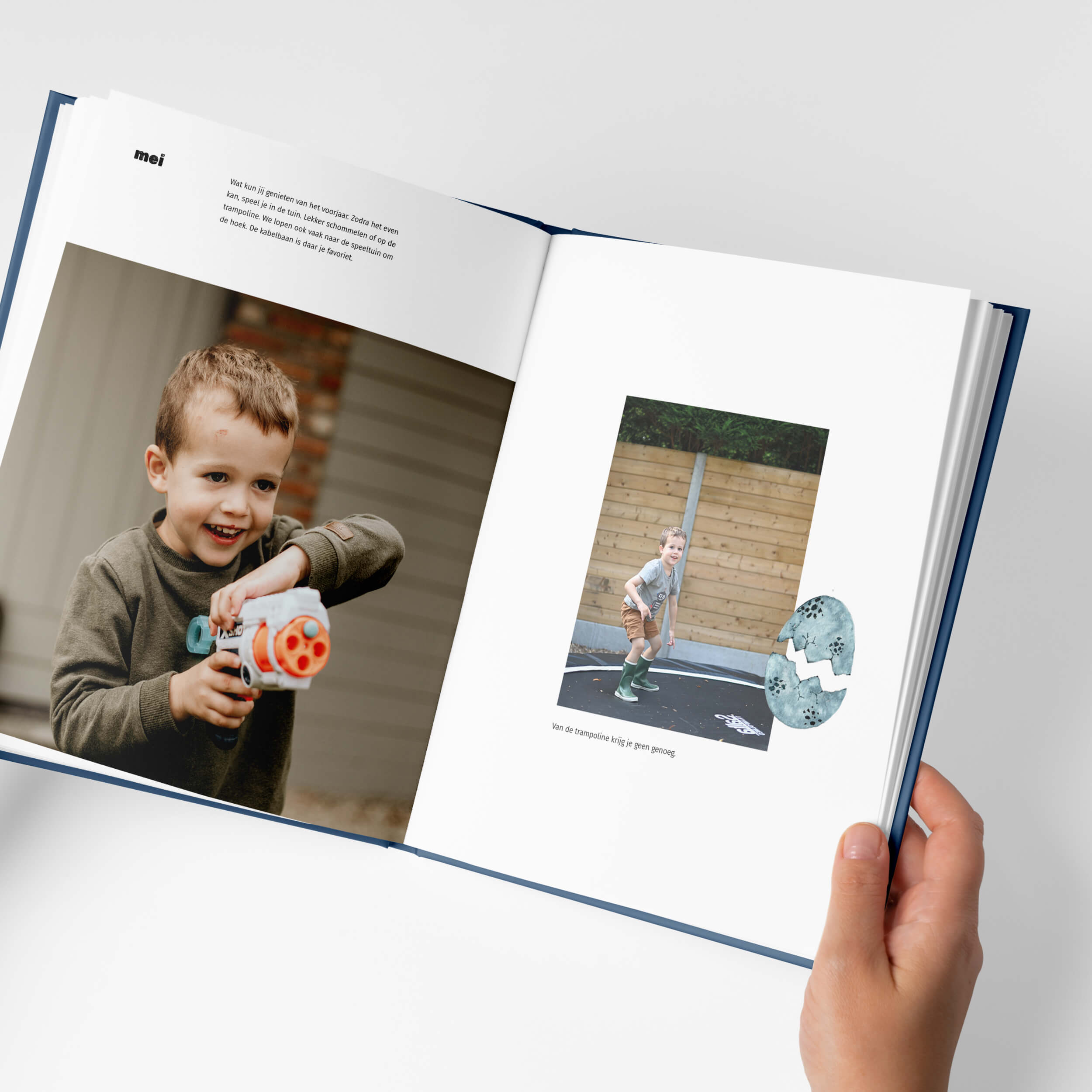 Grrr, ik ben een dino! Voor jongens die gek zijn op dino’s. Met dit stoere design maak je een fotoboek vol avontuur, midden in het dino-tijdperk. Speciaal ontworpen voor de hoogtepunten van het jaar. Dankzij het flexibele ontwerp bepaal je elk jaar zelf hoe je het invult.