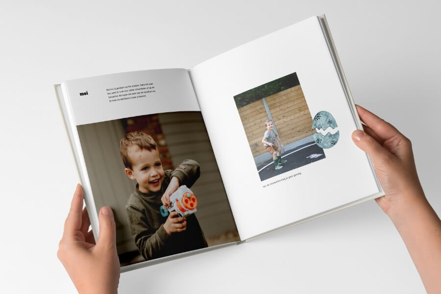 Grrr, ik ben een dino! Voor jongens die gek zijn op dino’s. Met dit stoere design maak je een fotoboek vol avontuur, midden in het dino-tijdperk. Speciaal ontworpen voor de hoogtepunten van het jaar. Dankzij het flexibele ontwerp bepaal je elk jaar zelf hoe je het invult.