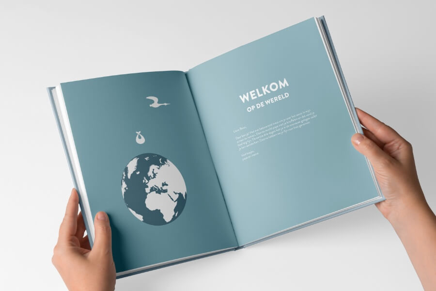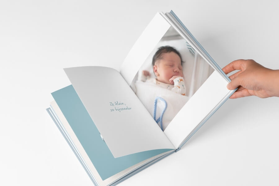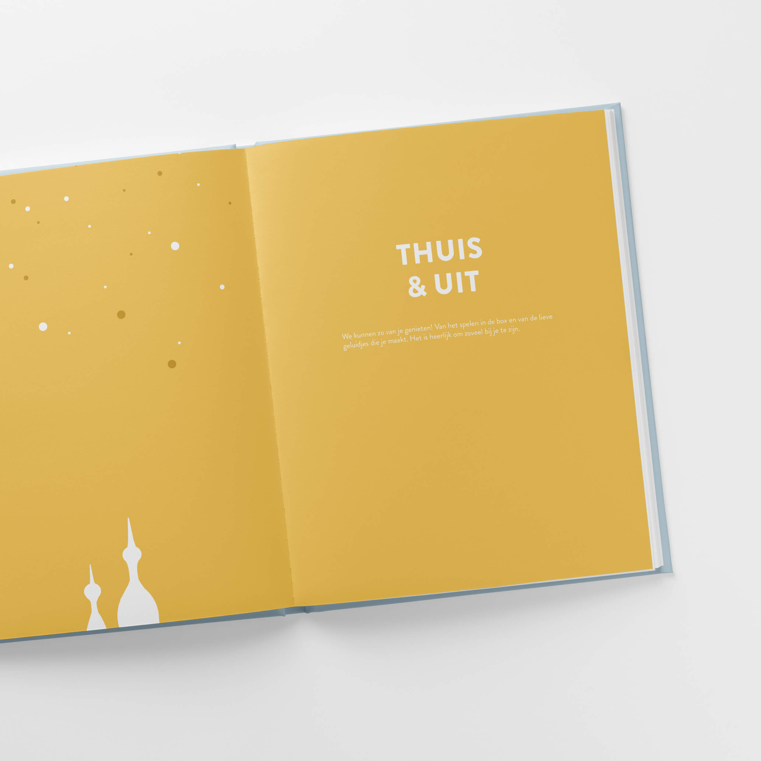 Er is plaats voor de hoogtepunten van je zwangerschap, de geboorte en het kraambezoek. Je laat ook de eerste keertjes zien, zoals in bad gaan of thuis slapen in een eigen bedje. Daarnaast is er ruimte om je mooiste foto’s van je zwangerschapsshoot en newbornshoot te laten stralen in het boek.