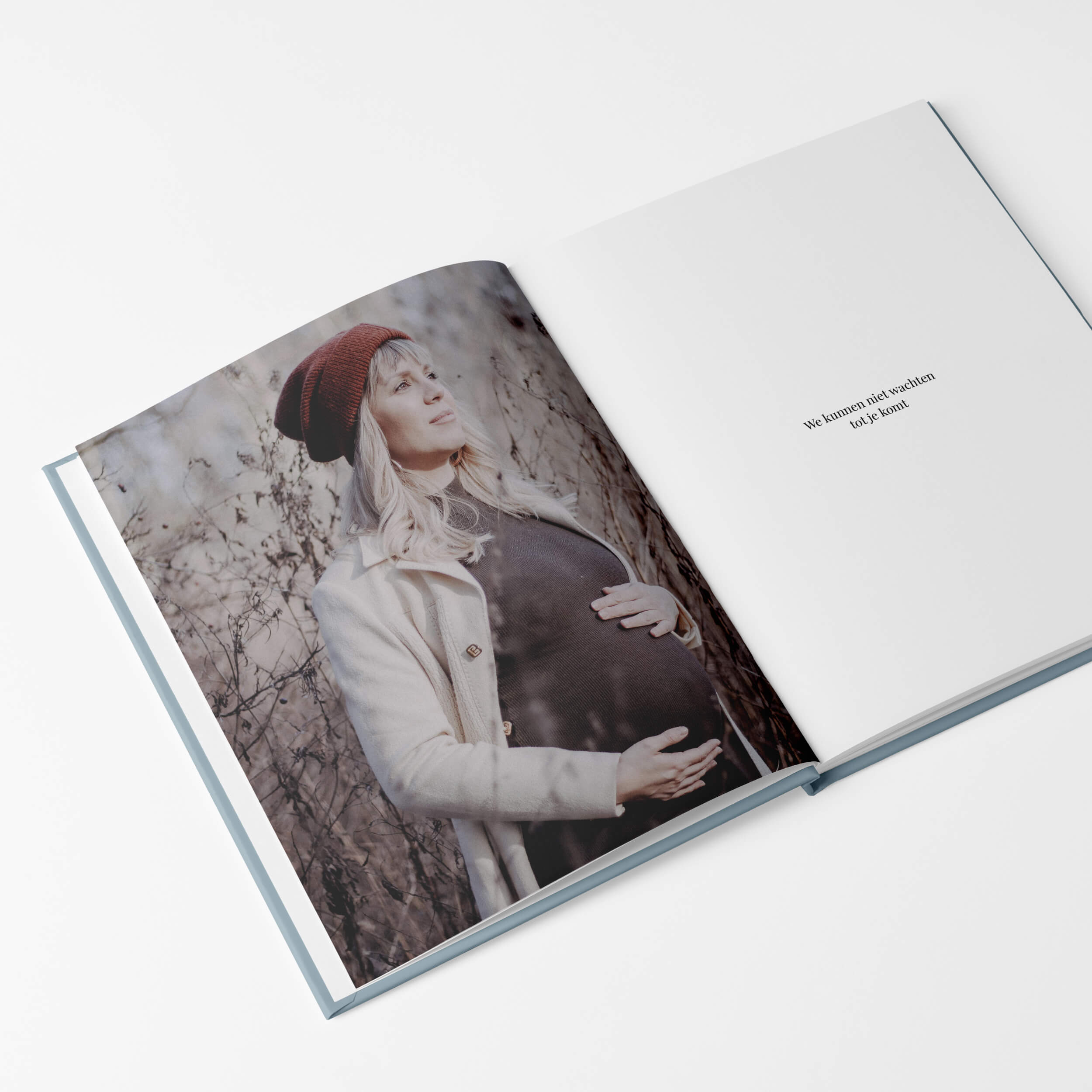Het Pure blue design geeft jouw fotoalbum een frisse, moderne look. Met helder blauwe accenten die prachtig aansluiten bij de foto's van je kind. Laat de foto's van je zwangerschap en kraamtijd schitteren in stijlvolle eenvoud.