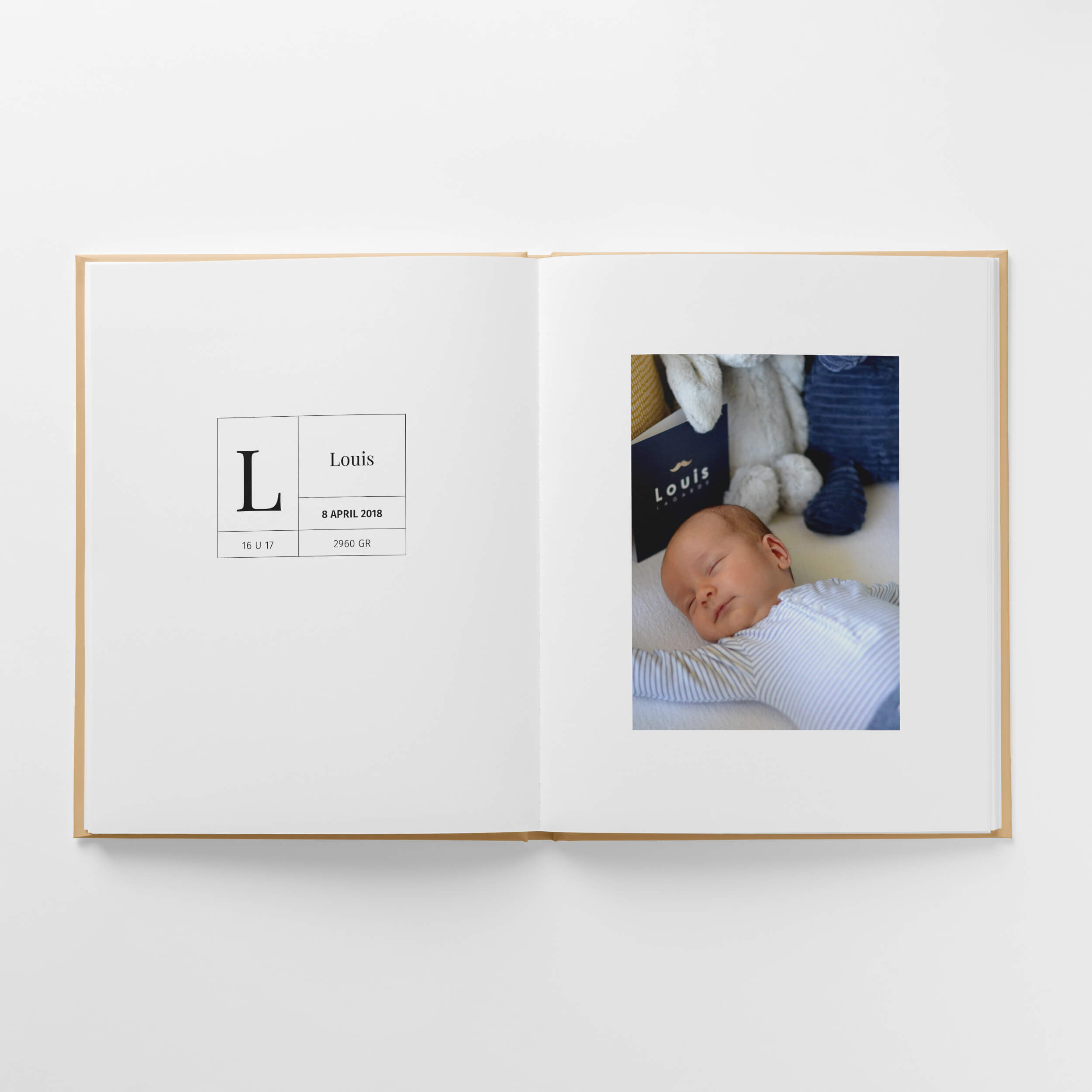 Er is plaats voor de hoogtepunten van je zwangerschap, de geboorte en het kraambezoek. Je laat ook de eerste keertjes zien, zoals in bad gaan of thuis slapen in een eigen bedje. Daarnaast is er ruimte om je mooiste foto’s van je zwangerschapsshoot en newbornshoot te laten stralen in het boek.