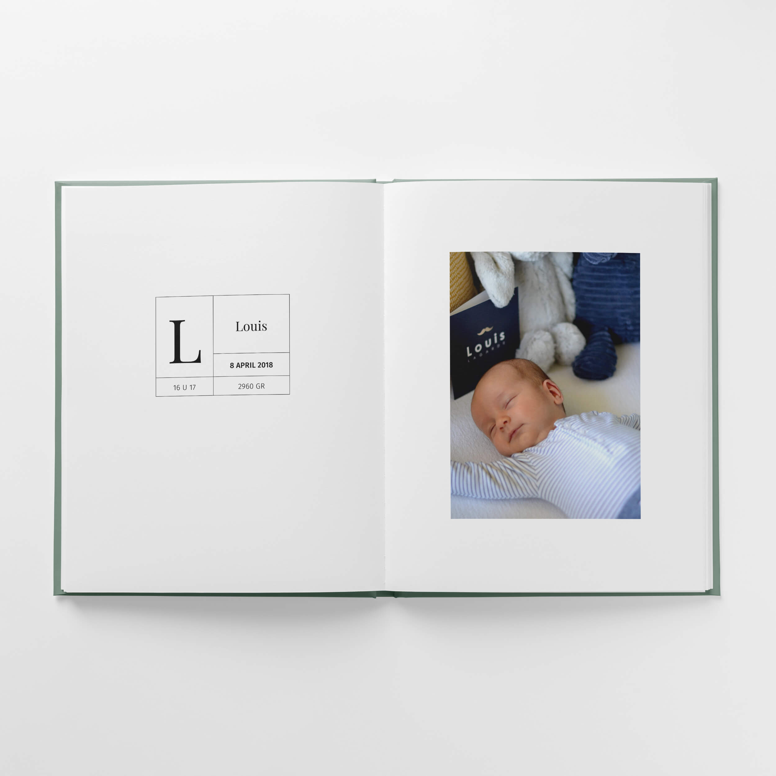 Er is plaats voor de hoogtepunten van je zwangerschap, de geboorte en het kraambezoek. Je laat ook de eerste keertjes zien, zoals in bad gaan of thuis slapen in een eigen bedje. Daarnaast is er ruimte om je mooiste foto’s van je zwangerschapsshoot en newbornshoot te laten stralen in het boek.