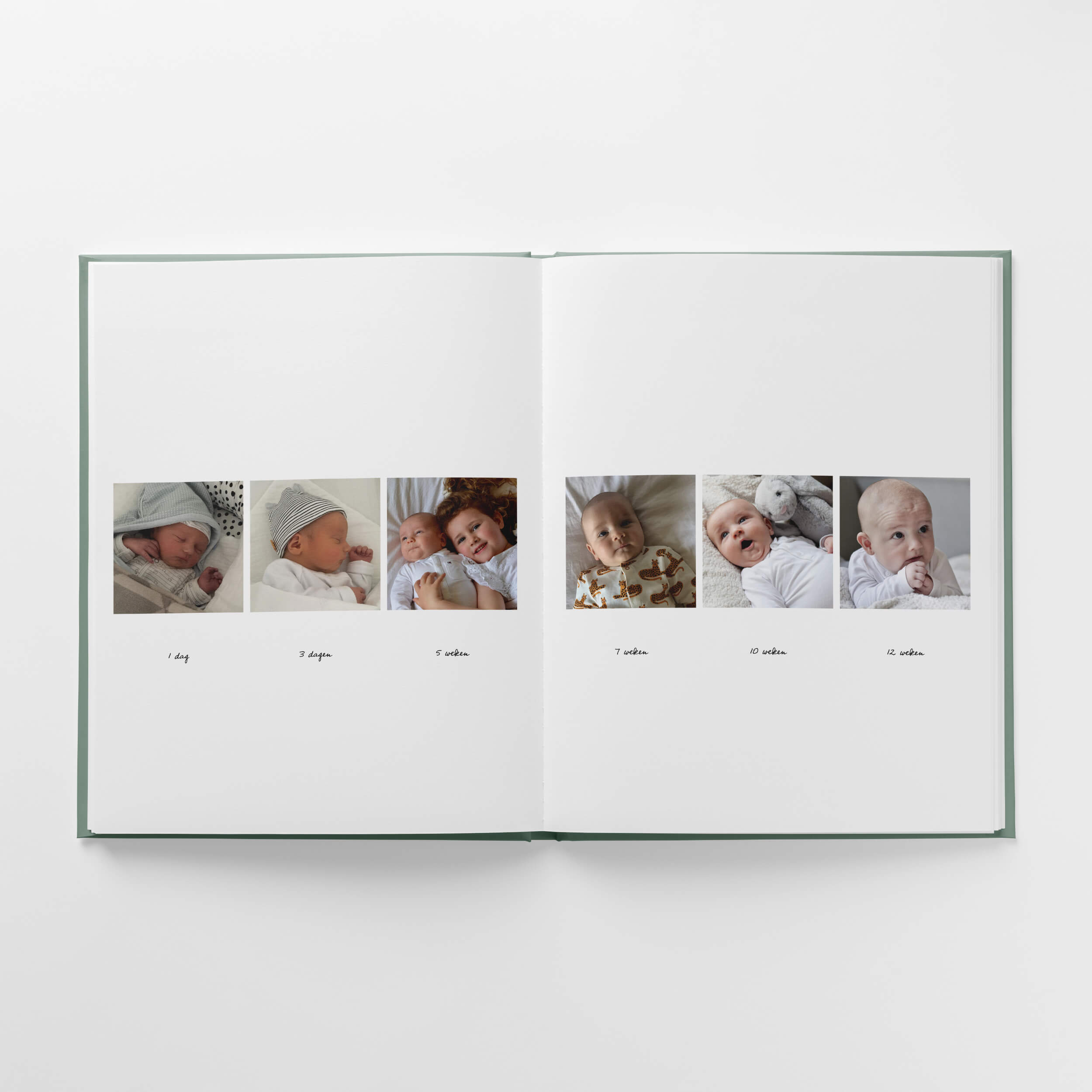 Het Pure leaf design geeft jouw fotoalbum een strakke, moderne look. Met warme groene kleuraccenten die prachtig aansluiten bij de foto's van je kind. Laat de foto's van je zwangerschap en kraamtijd schitteren in stijlvolle eenvoud.