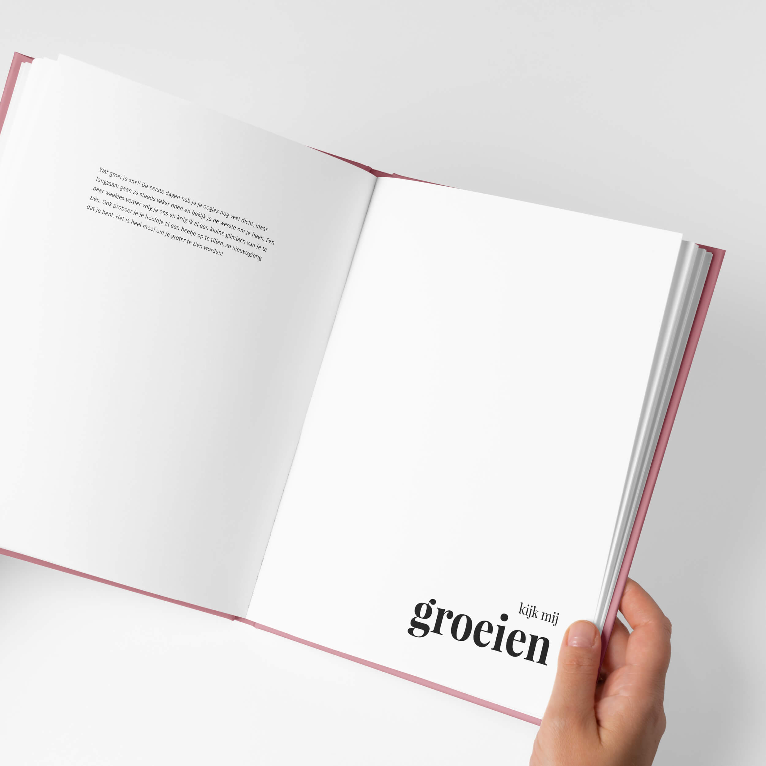 Het Pure pink design geeft jouw fotoalbum een frisse, moderne look. Met subtiele roze accenten die prachtig aansluiten bij de foto's van je kind. Laat de foto's van je zwangerschap en kraamtijd schitteren in stijlvolle eenvoud.