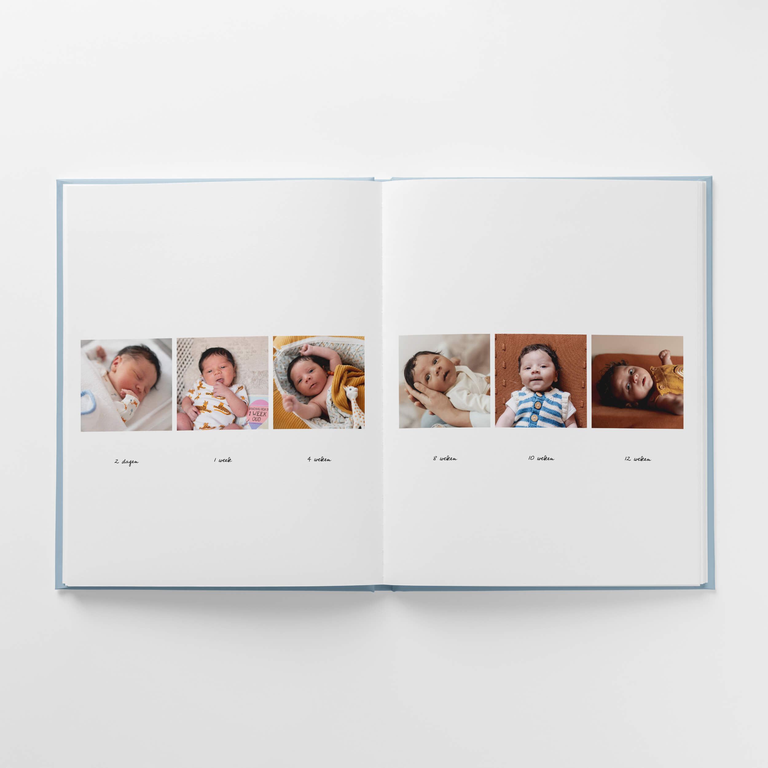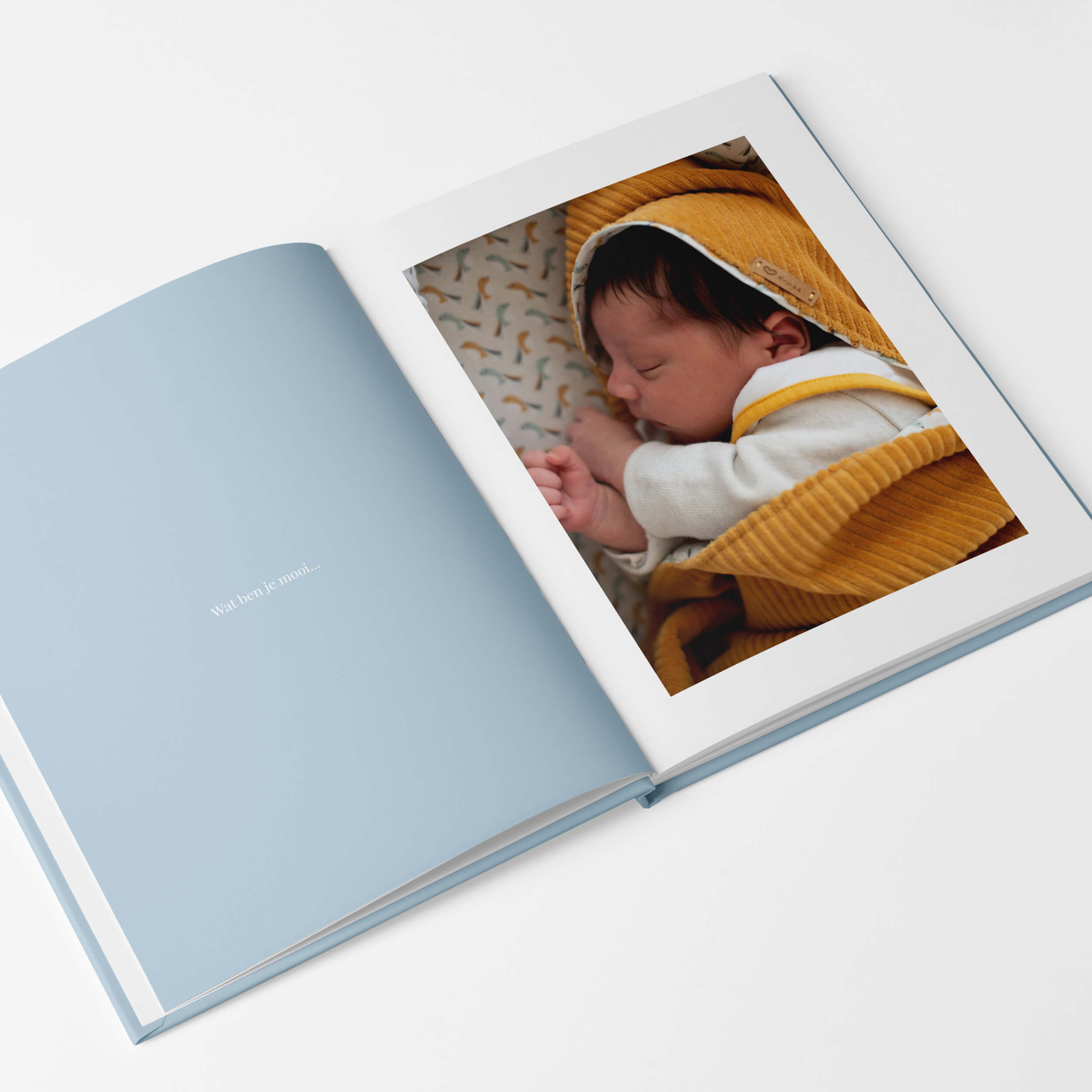 Er is plaats voor de hoogtepunten van je zwangerschap, de geboorte en het kraambezoek. Je laat ook de eerste keertjes zien, zoals in bad gaan of thuis slapen in een eigen bedje. Daarnaast is er ruimte om je mooiste foto’s van je zwangerschapsshoot en newbornshoot te laten stralen in het boek.