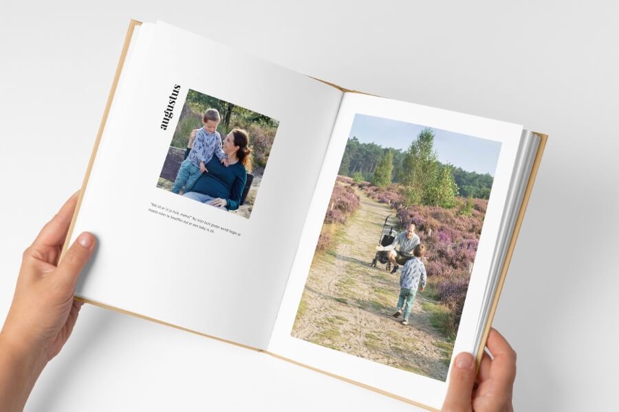 Voor de Pure boeken creëerde ik een tijdloos ontwerp waarin je foto’s stralen. Er is veel rust in het boek, door de zorgvuldig ontworpen pagina’s met veel witruimte. Je hoeft écht niet het boek met perfecte foto’s te vullen, ook de dagelijkse gebeurtenissen komen er juist prachtig in uit! Bewaar die leukste momenten en maak een boek vol herinneringen.